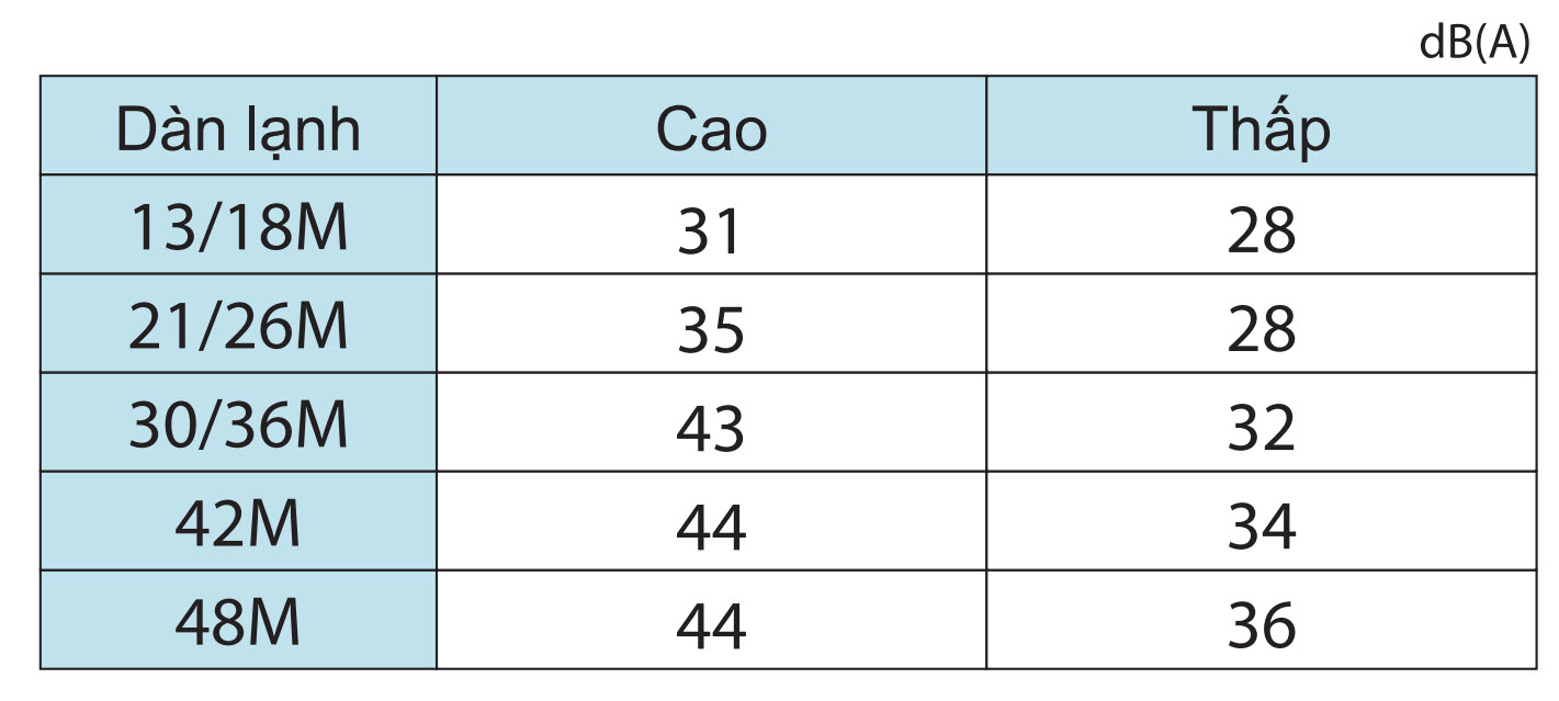 Tùy vào từng chủng loại dàn lạnh mà độ ồn giao động từ 32 dB(A) đến 45 dB(A).