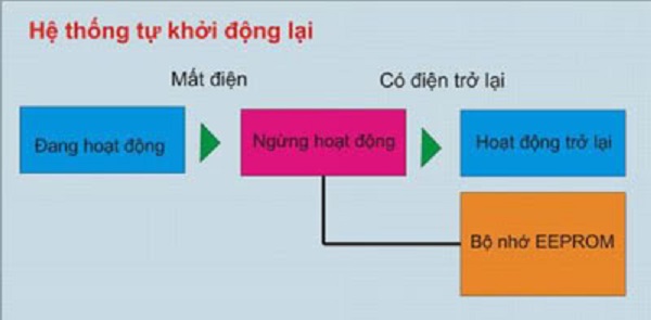 4. Tự khởi động lại khi mất điện: Là chức năng ghi lại chế độ làm việc của máy ngay trước khi hệ thống ngắt điện
