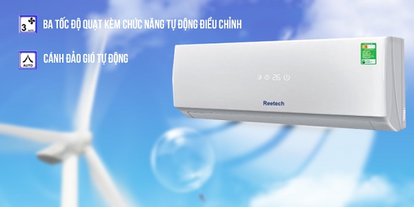 Máy lạnh Reetech có 3 chế độ thiết lập tốc độ quạt khác nhau để lựa chọn, mang đến không gian mát mẻ thoải mái hơn, đảm bảo sức khỏe hơn cho bạn và gia đình. Với cánh đảo gió tự động, đảm bảo luồng gió tỏa đều cho dù ở bất cứ vị trí nào trong phòng.